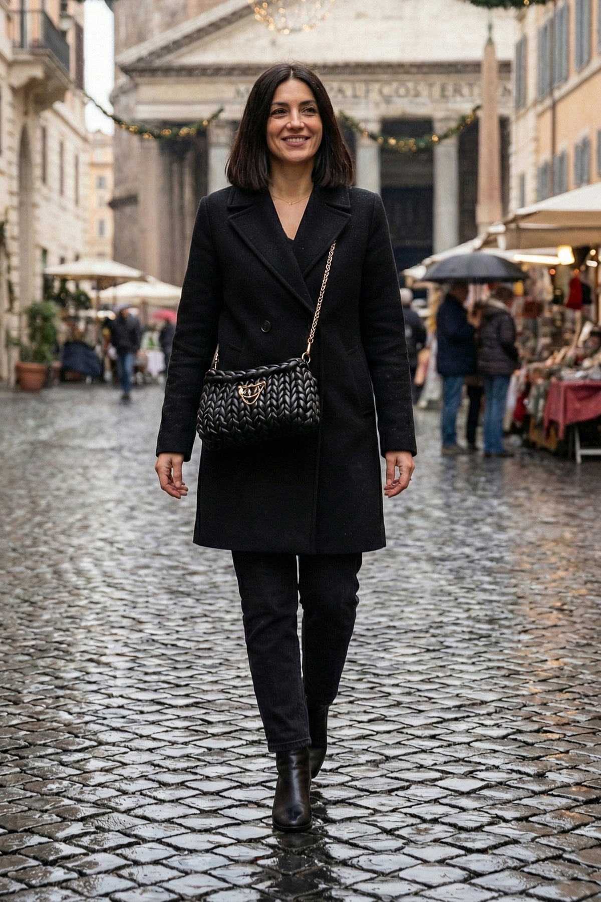 Pezzo unico dall'animo rock-chic. Questa borsa in similpelle intrecciata nera è definita dall'originale spilla a balia gioiello con charm. Un accessorio artigianale dal carattere deciso, perfetto per aggiungere una nota di audace eleganza al tuo look.